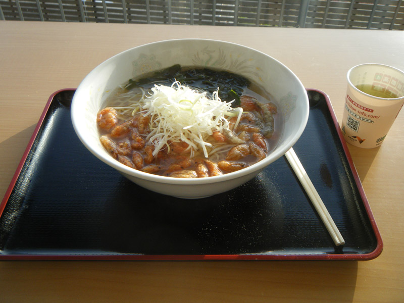 諏訪湖で諏訪湖川海老塩ラーメン。