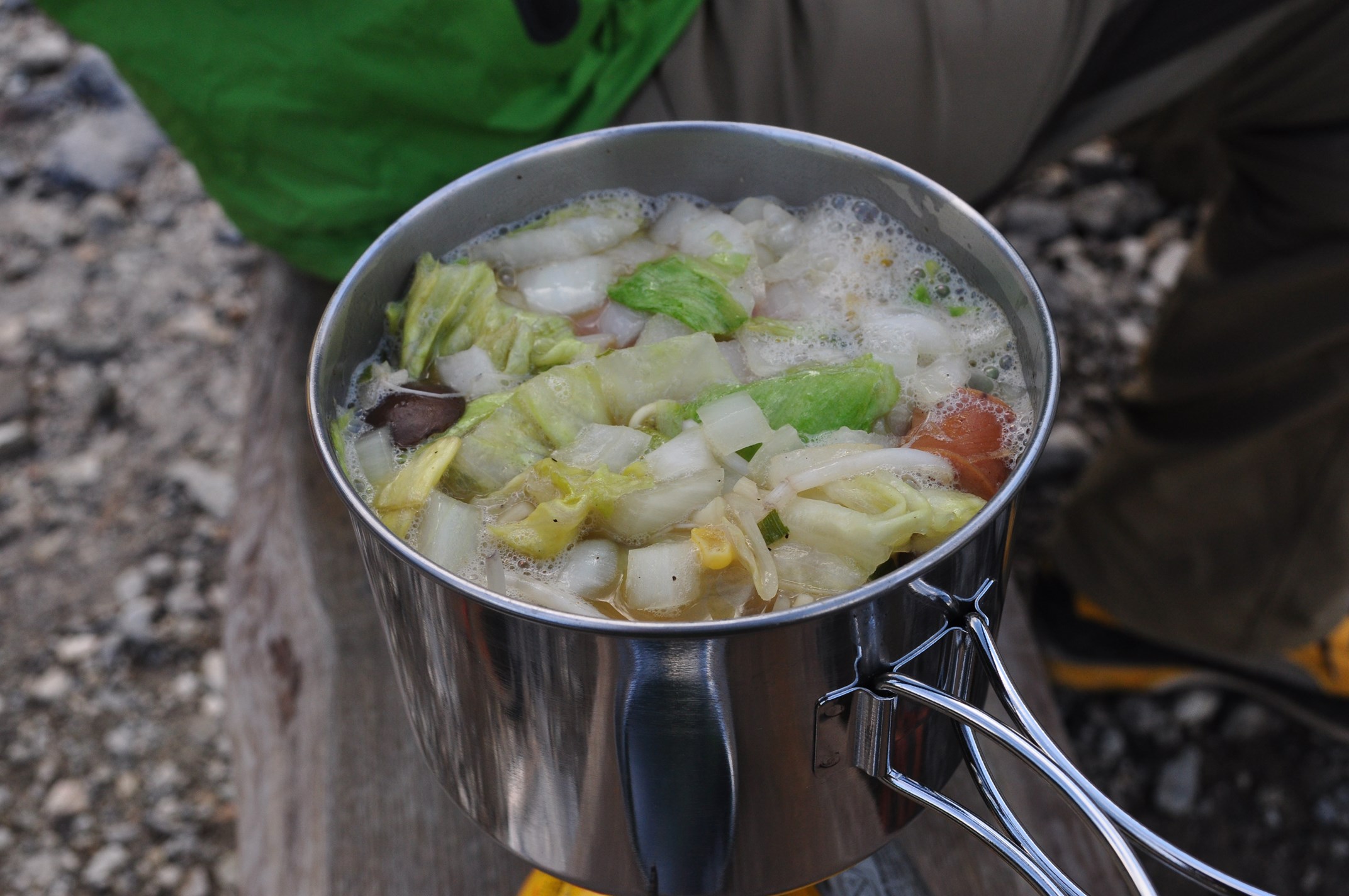 テントに戻った後は、夕食(カップ麺、五目ご飯)を食べて、明日に備えて就寝。