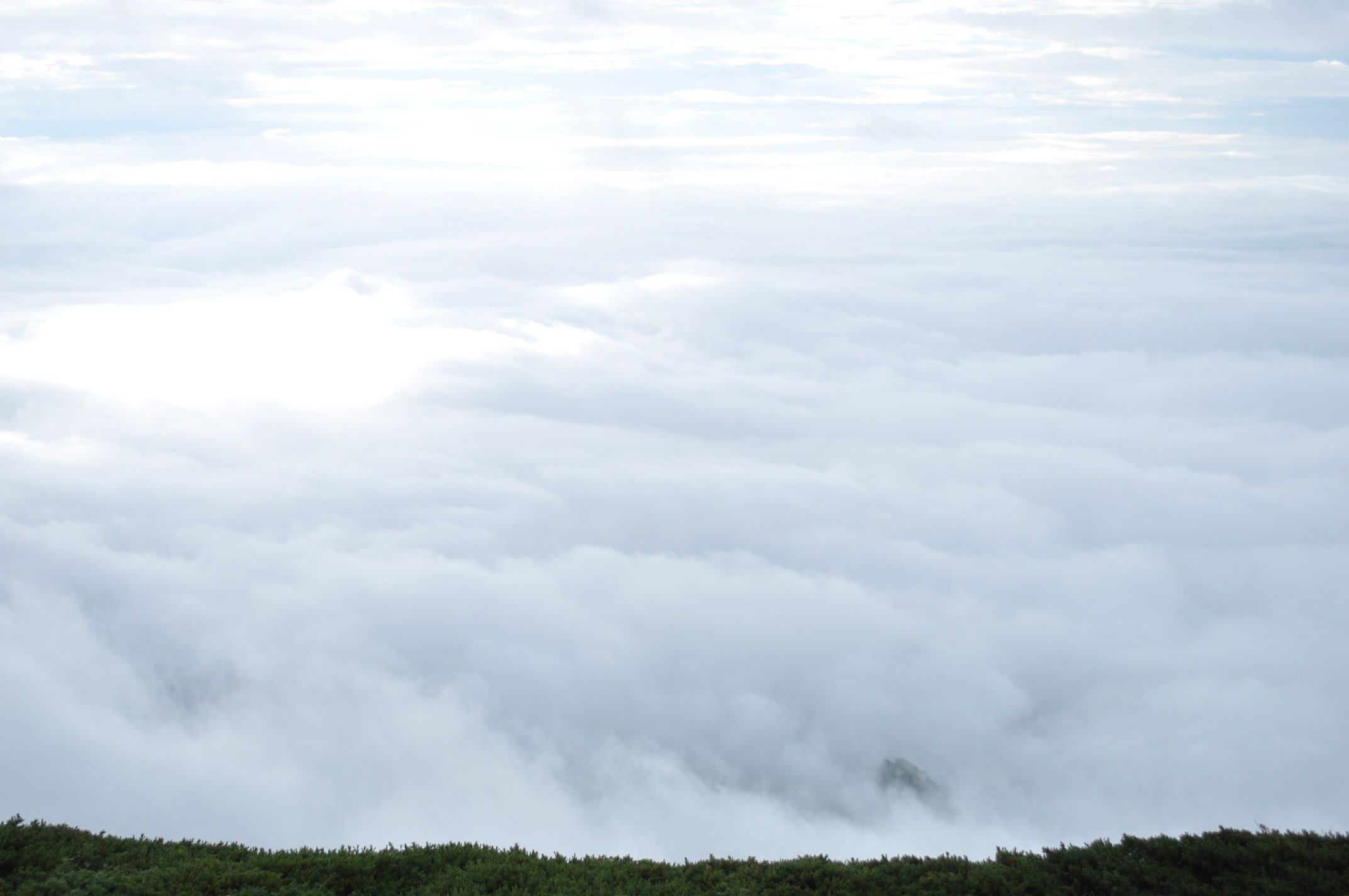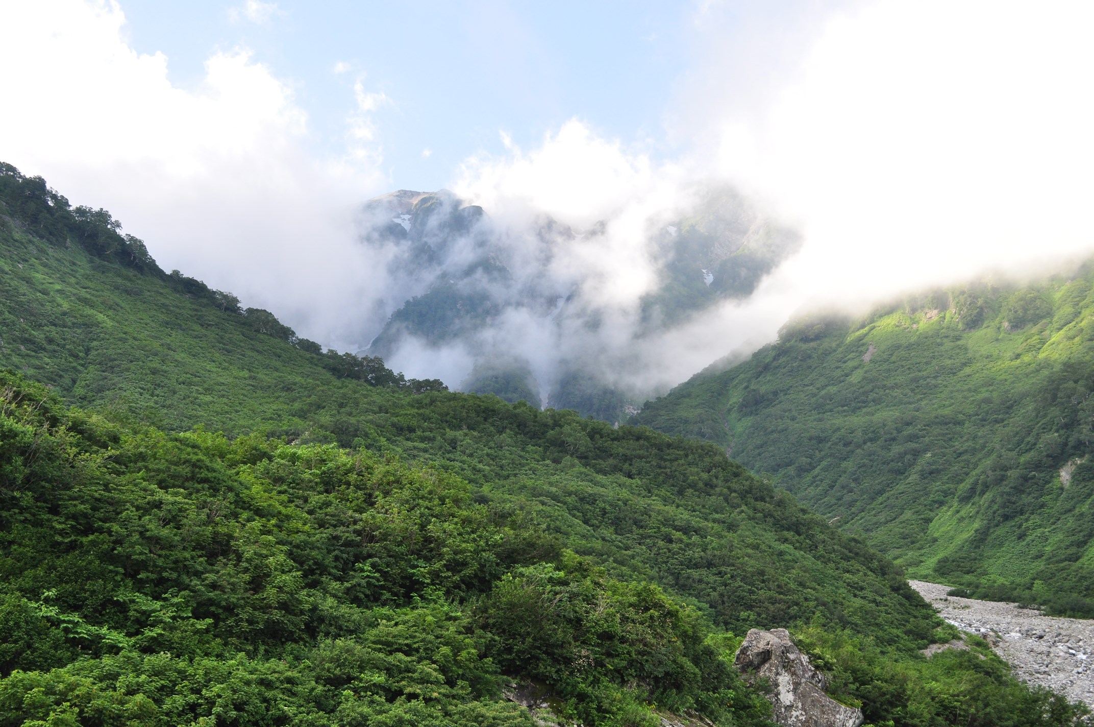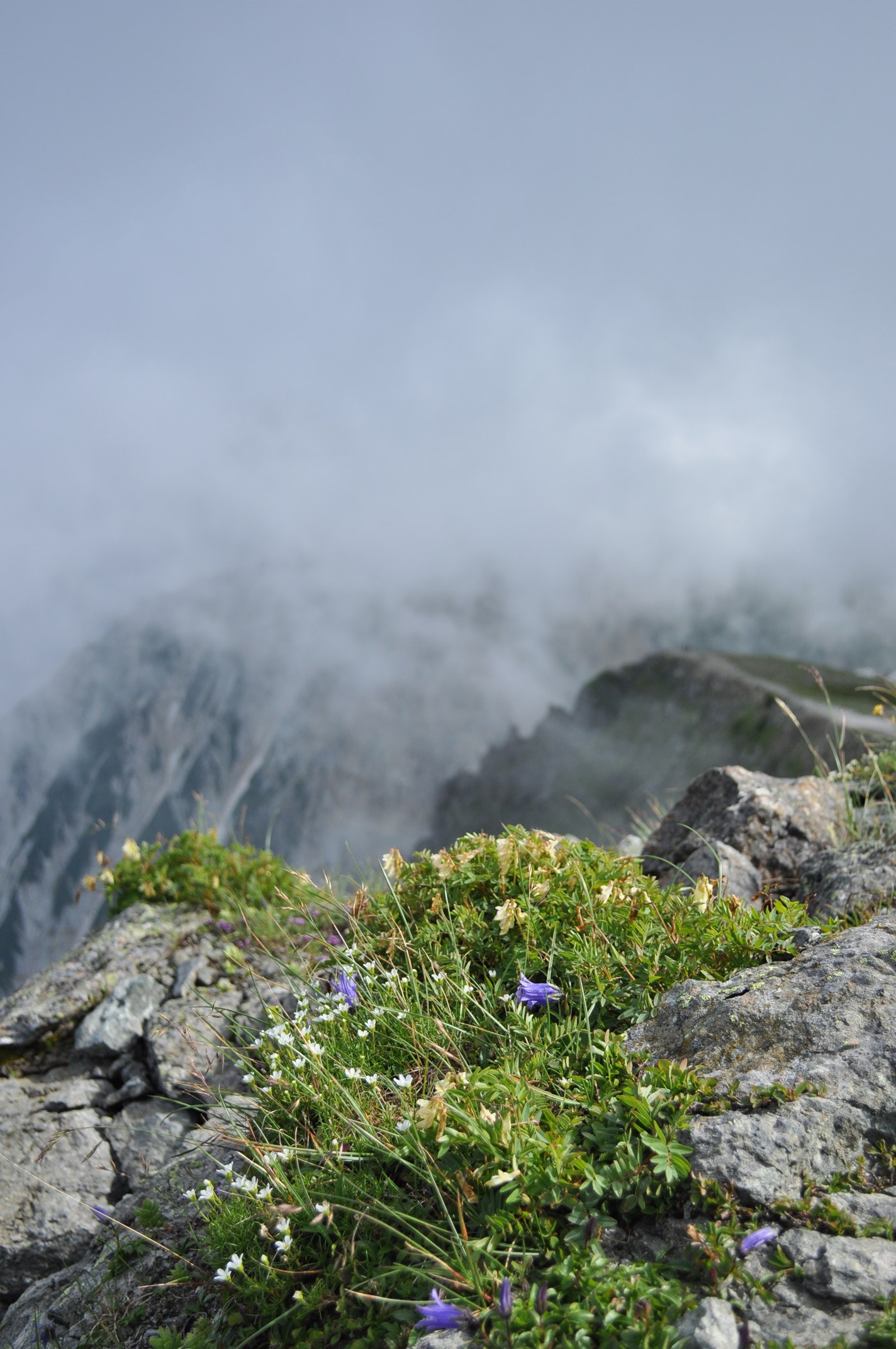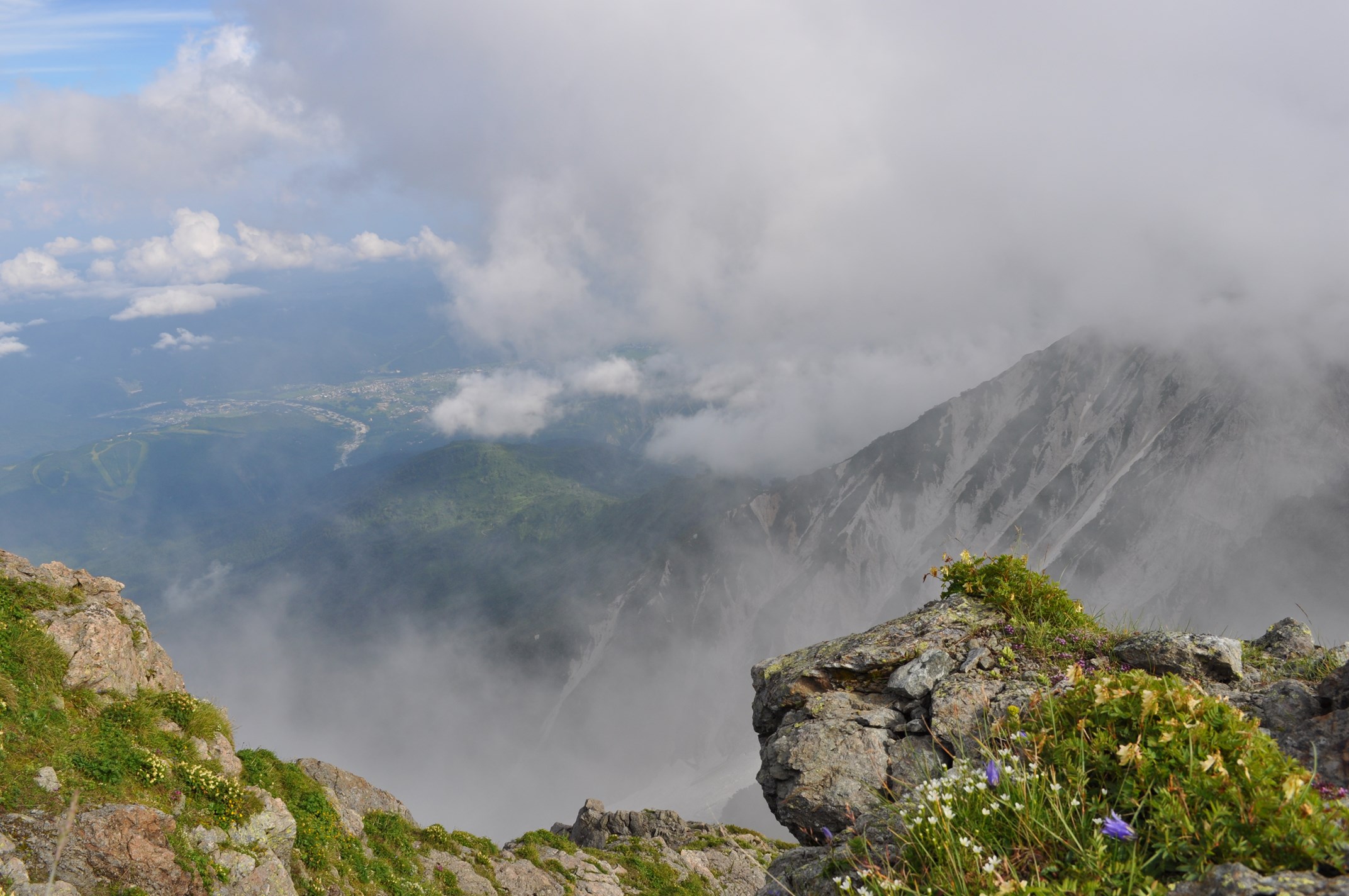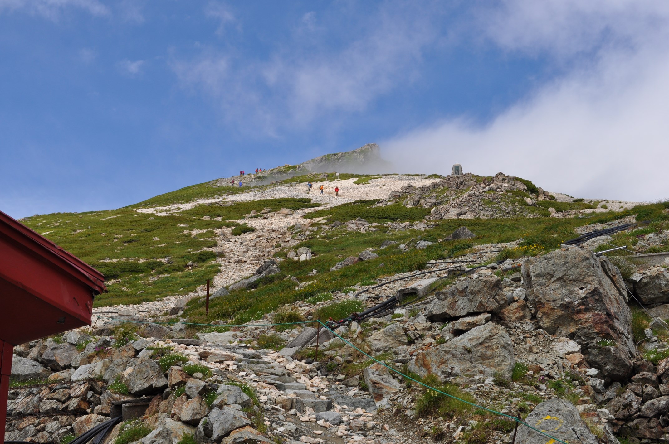 白馬山荘からふと頂上を見上げてみると、今までガスで覆われていた山頂が見えたので、ここぞとばかりにシャッターを押してしまいました。